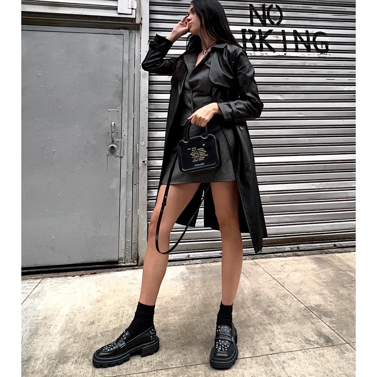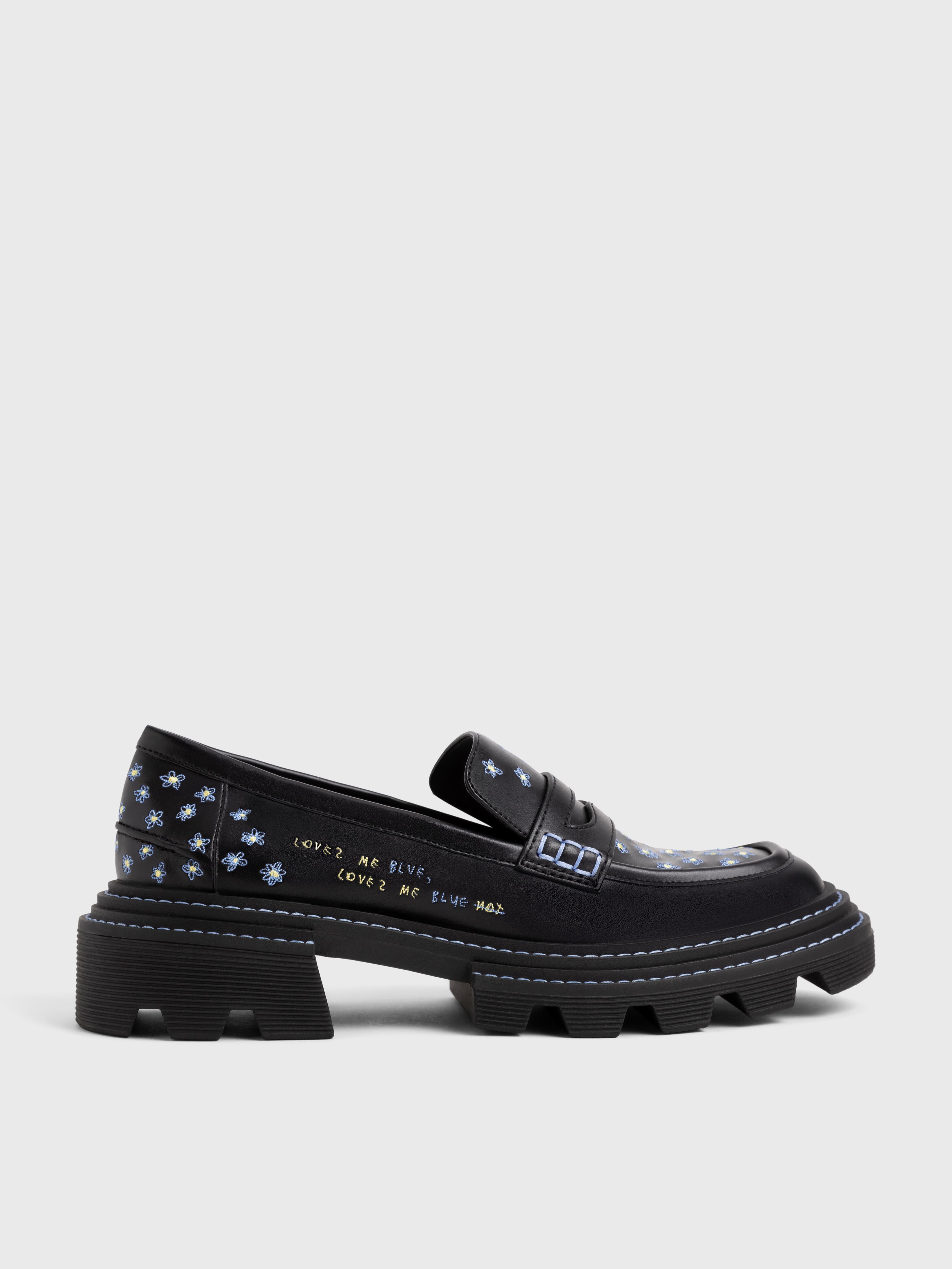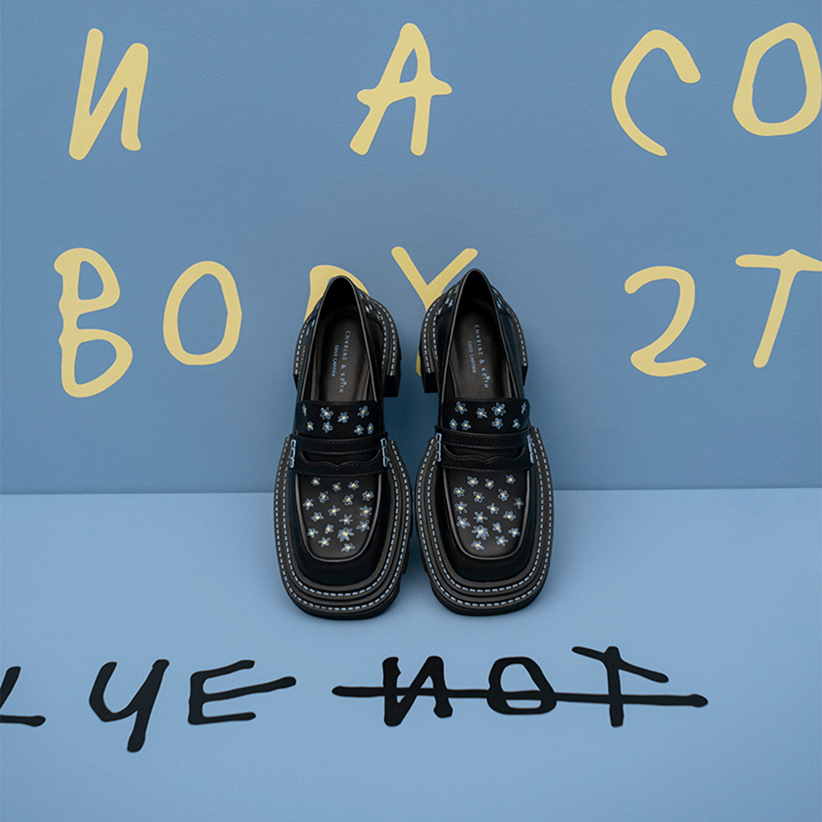 تسوقي المجموعةArtist and CHARLES & KEITH global brand ambassador @vousmevoyez brightens up her edgy all-black summer outfit with the Perline embroidered chunky penny loafers and sculptural tote bag from our #CocoCapitanxCharlesKeith collection.