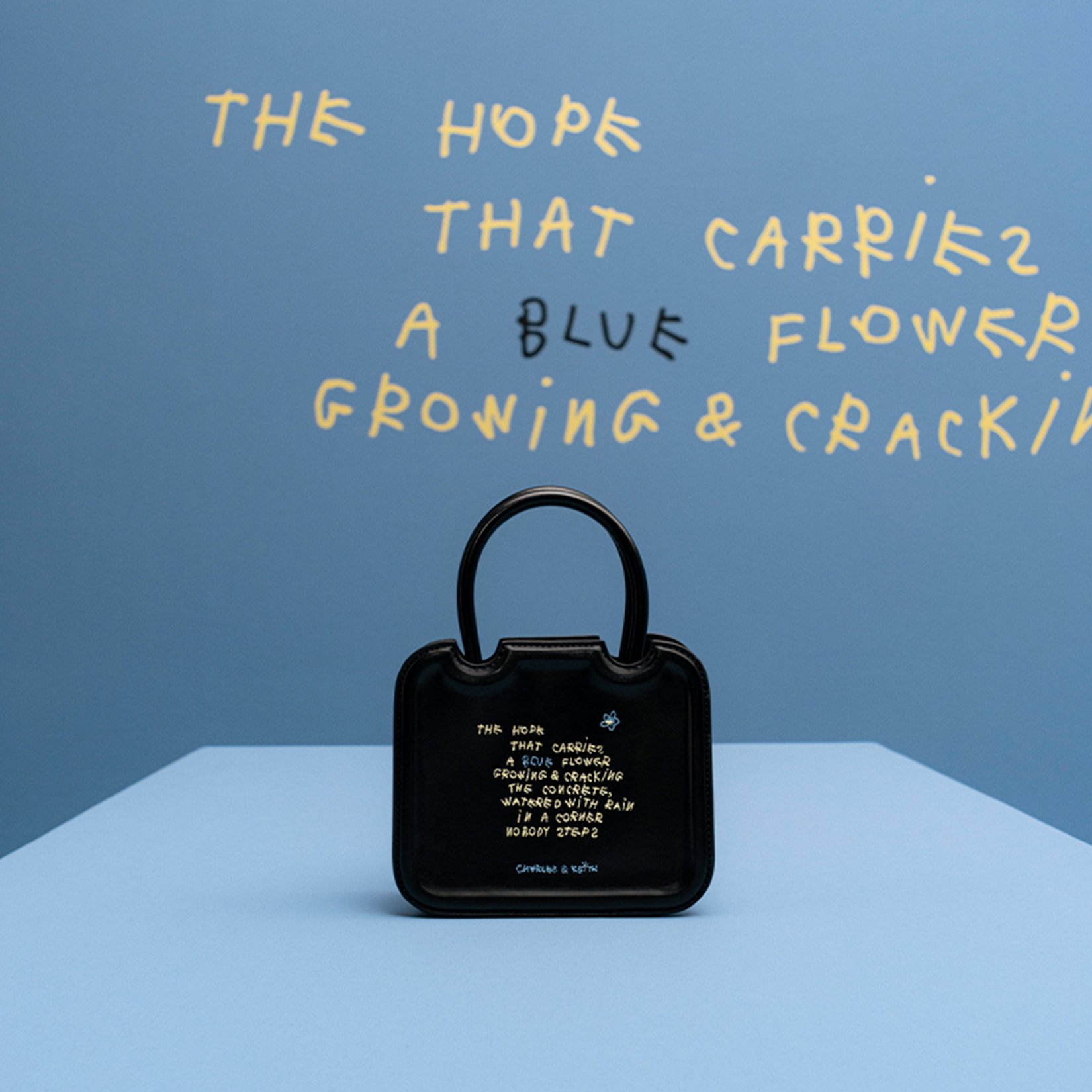 تم استلهام فن كوكو كابيتان من "المحادثات المسموعة والمذكرات وموجات الإلهام المفاجئة". تروي حقيبة اليد الكبيرة بمقبضها المزدوج المزينة بخط يد الفنانة المميز قصة تبعث على الأمل عن زهرة زرقاء منعزلة تنمو وتتفتح بين الإسمنت.